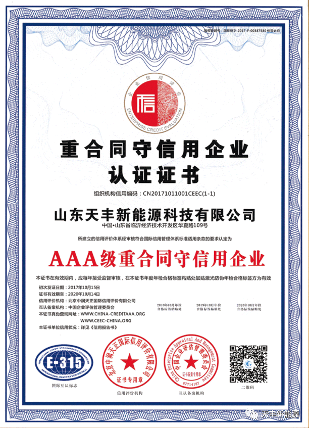 天豐部分榮譽資質(zhì):