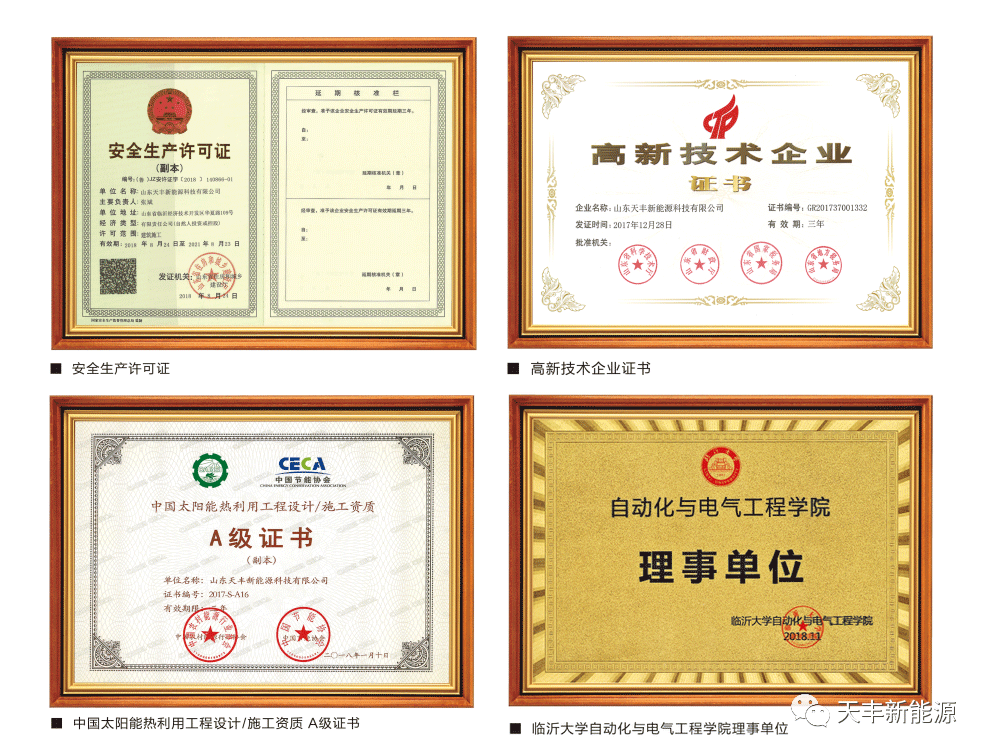 當下的新能源行業(yè),資質(zhì)已成為企業(yè)生存的生命線。對于消費者來說,萬一買到?jīng)]有資質(zhì)企業(yè)生產(chǎn)的陽臺壁掛熱水器,意味著日后的售后、維修等服務(wù),將得不到保障,其中的損失最終也將由用戶自行買單。天豐素有“太陽能熱利用工程專業(yè)品牌”之稱,憑借扎實的口碑、過硬的產(chǎn)品實力、持續(xù)溢價的品牌價值,早早攬獲“建筑機電安裝工程專業(yè)承包三級資質(zhì)”、“太陽能熱利用工程設(shè)計、施工A級資質(zhì)”等全品類產(chǎn)品資質(zhì)加身,進一步夯實在太陽能陽臺壁掛領(lǐng)域市場的領(lǐng)軍地位,助力經(jīng)銷商伙伴長線經(jīng)營、長久發(fā)展。以資質(zhì)力為翼,天豐經(jīng)銷商合作伙伴更是擁有靈活應(yīng)變、縱橫市場、放心賣貨的底氣,攜手企業(yè)實現(xiàn)品牌騰飛。