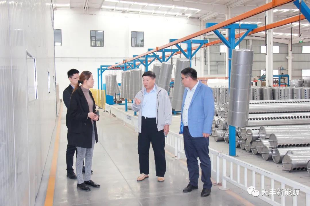 近日,中國節能協會太陽能專業委員會主任、中國農村能源行業協會太陽能熱利用專業委員會秘書長賈鐵鷹蒞臨山東天豐新能源科技有限公司參觀視察,天豐公司工程部長程軍、行政部長楊云霞全程陪同。