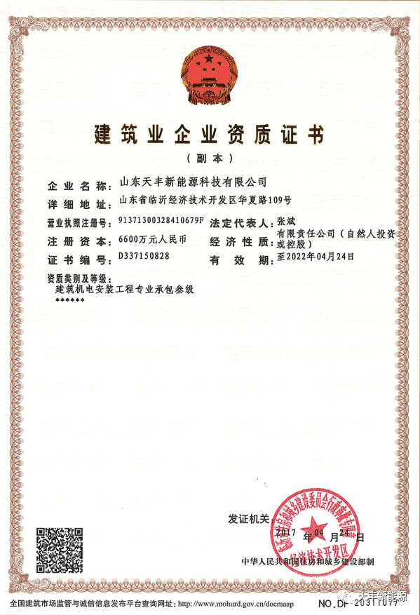 作為太陽能熱利用工程專業品牌,天豐早早攬獲“建筑機電安裝工程專業承包三級資質”、“太陽能熱利用工程設計、施工A級資質”等全品類產品資質加身,進一步夯實在太陽能陽臺壁掛領域市場的領軍地位。