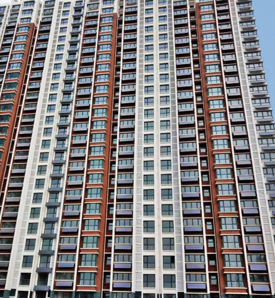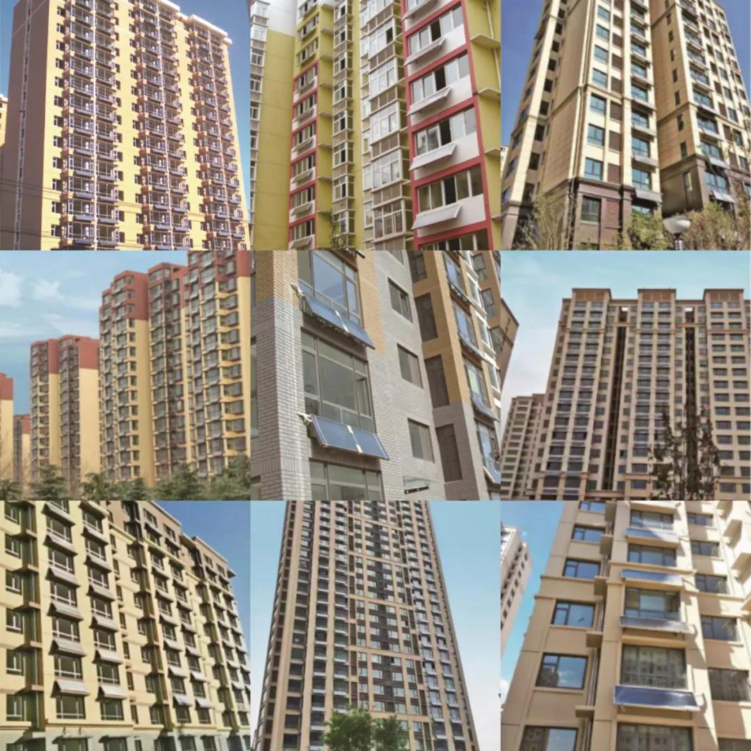 在高聳的居民樓上,共安裝了3713套天豐陽臺壁掛太陽能,一排排平板集熱器美觀又整齊,與建筑融合,在小區內形成了一道靚麗的風景線。
