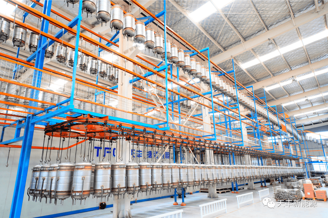 在搪瓷生產線,天豐工藝、技術應用程度保持著領先地位。公司配備360°自動涂搪機,根據濕法搪瓷工藝,能夠快速高效地將搪瓷料均勻的涂刷至承壓水箱內膽壁上,并實現高效附著。