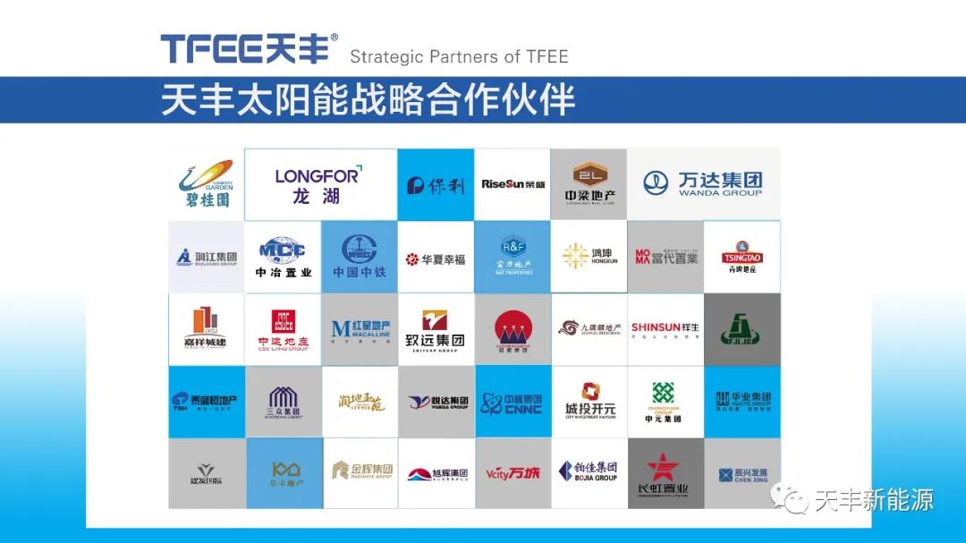 產(chǎn)品力與服務(wù)力的雙重提升、對(duì)光熱行業(yè)20余年的專(zhuān)注積累、誠(chéng)信務(wù)實(shí)的經(jīng)營(yíng)理念,讓合作伙伴對(duì)天豐新能源充滿信心,放心下單。得益于客戶對(duì)天豐品牌的口口相傳,天豐在市場(chǎng)的品牌知名度也在逐年擴(kuò)大,特別是在樓盤(pán)配套清潔熱水領(lǐng)域,已經(jīng)和碧桂園、龍湖地產(chǎn)、保利地產(chǎn)、中冶置業(yè)、中梁地產(chǎn)、中鐵、萬(wàn)達(dá)等數(shù)十家知名房地產(chǎn)巨企建立了深度戰(zhàn)略合作關(guān)系。